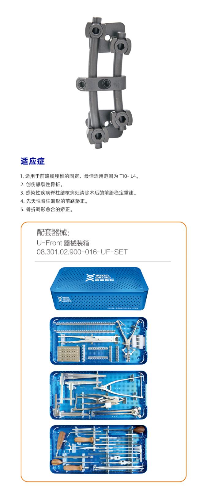 1. 適用于前路胸腰椎的固定,最佳適用范圍為 T10- L4。